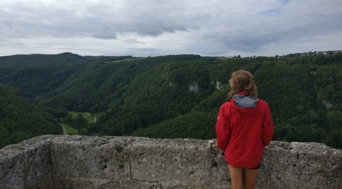 Diesmal startete ich auf einem kleinen Wanderparkplatz im kleinen Ort Wittlingen. Ein schöner grüner Pfad führte an einem Anwesen vorbei bis zur Burgruine Hohenwittlingen. Eine alte Burgruine hoch über einem traumhaft schönen Tal, durchzogen von der Erms. Viele Mauern sind noch vorhanden und schöne Efeuranken bahnen sich entlang der Wege. Es war die perfekte Gelegenheit für ein Vesper.