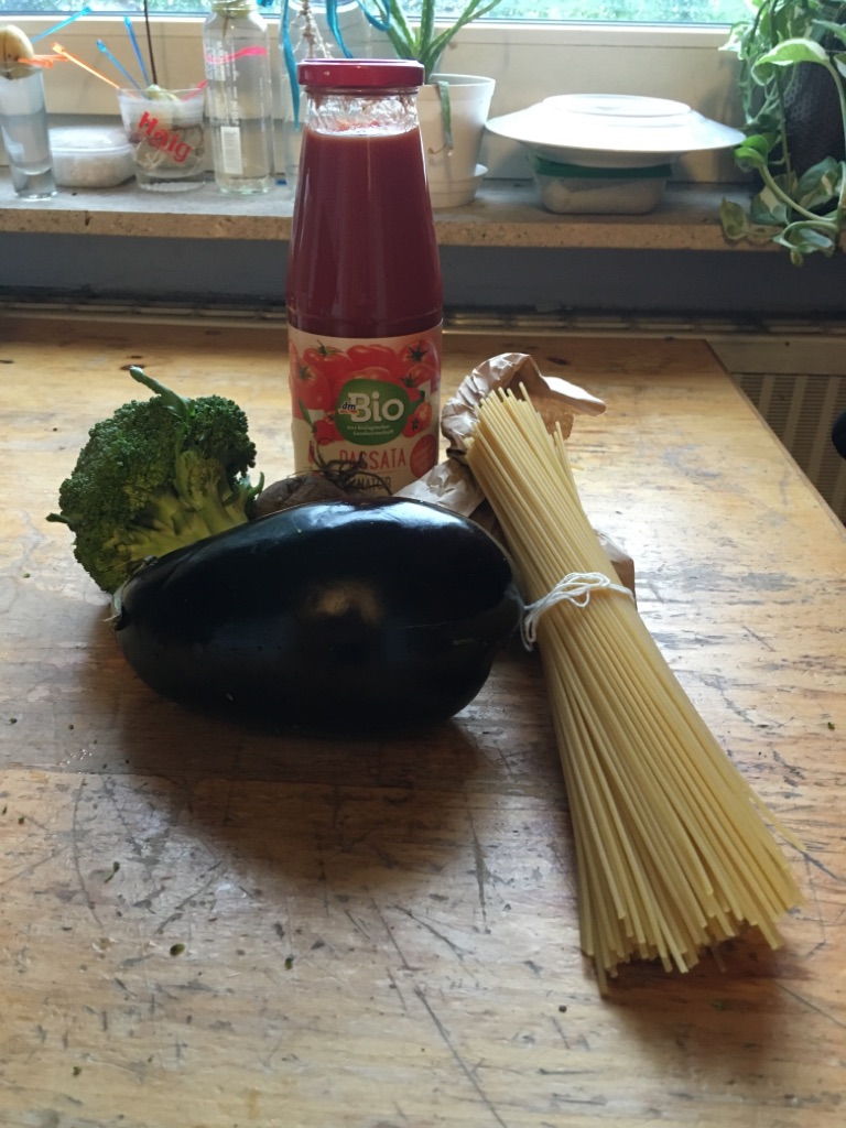 Als am Dienstag dann endlich mein Konto wieder gedeckt war, bin ich voller Elan und Eifer einkaufen gegangen. Mein erster Stopp war der Marktstand vorm Nonnenhaus. Dort versorgte ich mich mit Gemüse. Danach bin ich weiter in den Unverpacktladen „Speicher“ und war sehr angenehm überrascht. Die Preise waren lang nicht so hoch wie erwartet und die Mitarbeiter*innen sehr freundlich. Außerdem gibt es zwischen Dienstag und Donnerstag von 15-17 Uhr sogar Rabatt für Studierende. Was mir besonders gefallen hat, war, dass die Spaghetti statt durch Plastik, mit einem kleinen weißen Bindfaden zusammengehalten wurden.