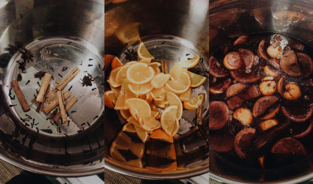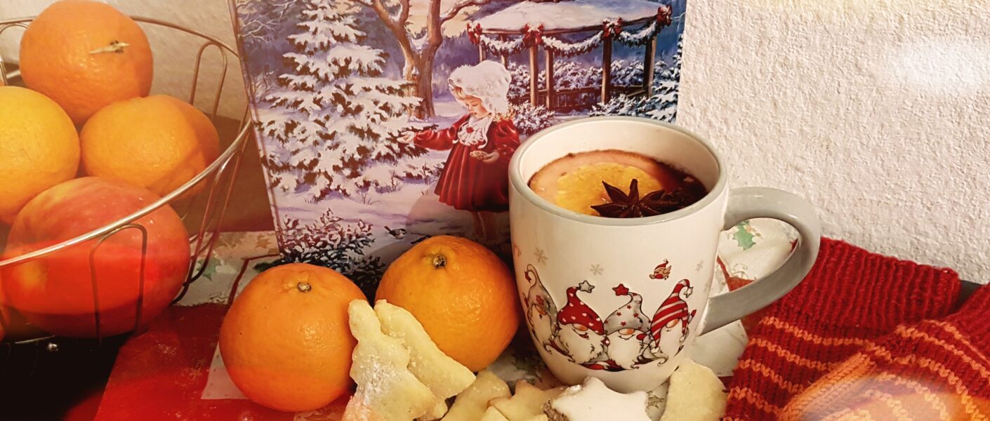 In erster Linie sollte jede*r einmal überlegen, was für sie oder ihn zum Weihnachtsmarktfeeling dazugehört. Beginnen wir zum Beispiel mit einem heißen Getränk. Glühwein lässt sich hervorragend in der eigenen kuscheligen Küche zusammenbrauen. Man nehme: