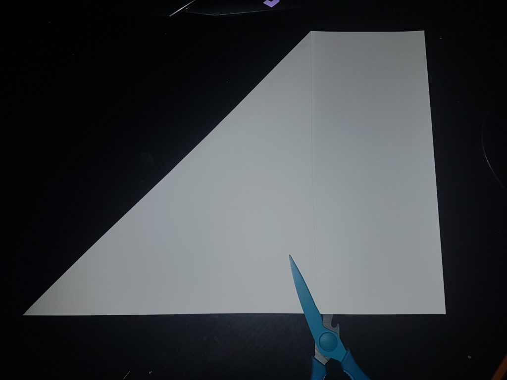 Falte das Papier auf die Hälfte und schneide es so ab, dass du am Ende ein gleichseitiges Viereck hast.