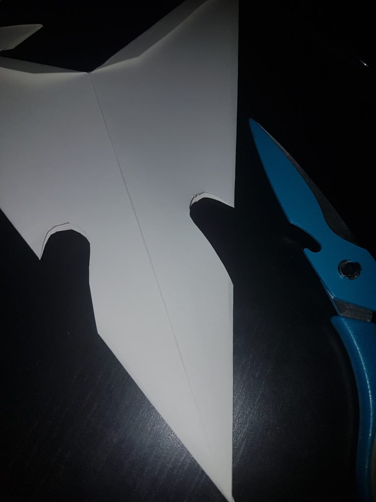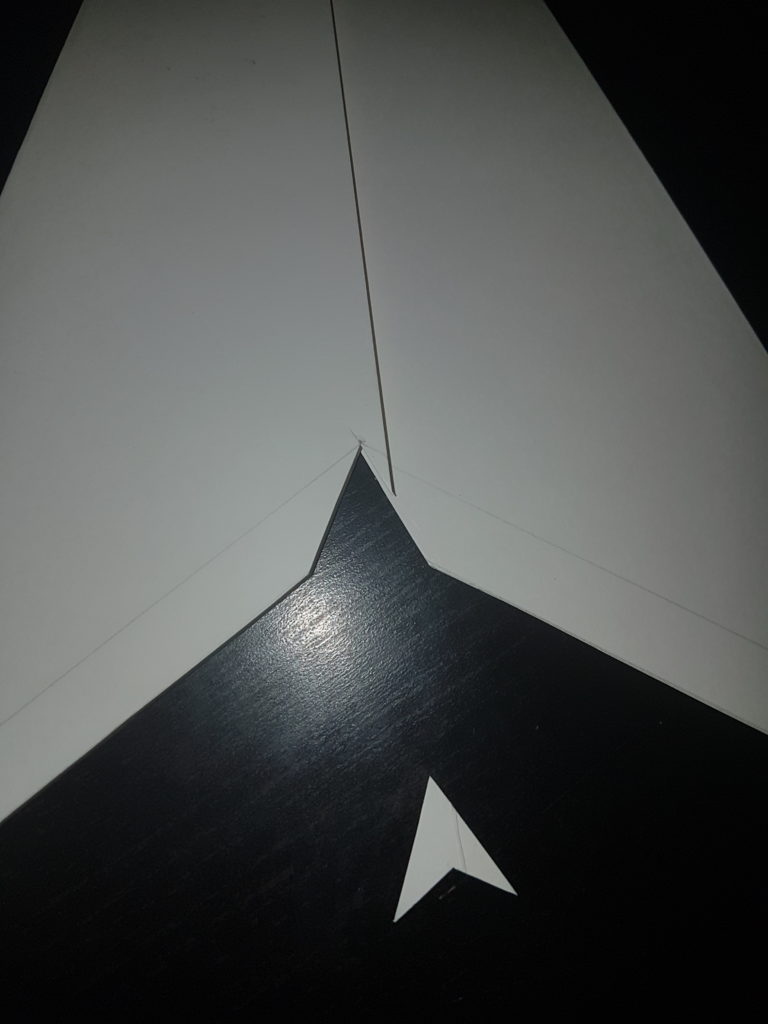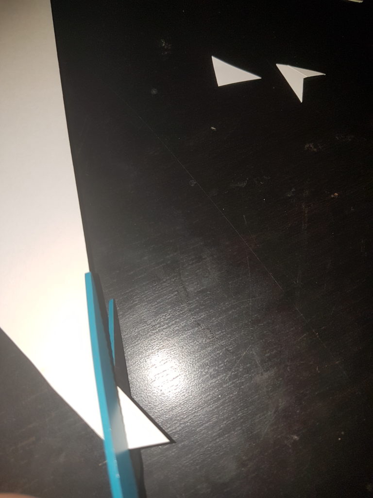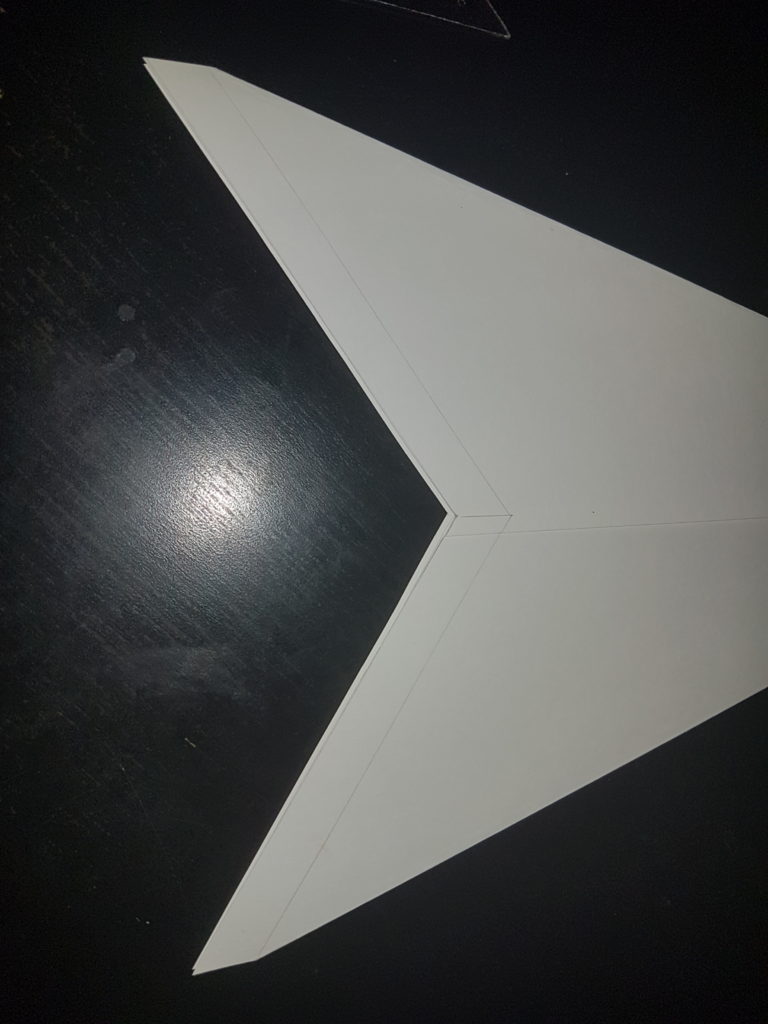 Schneide ein gleichseitiges Dreieck zu dem, zuvor gemalten, 1,5cm hohen Strich an der Mittellinie ein.