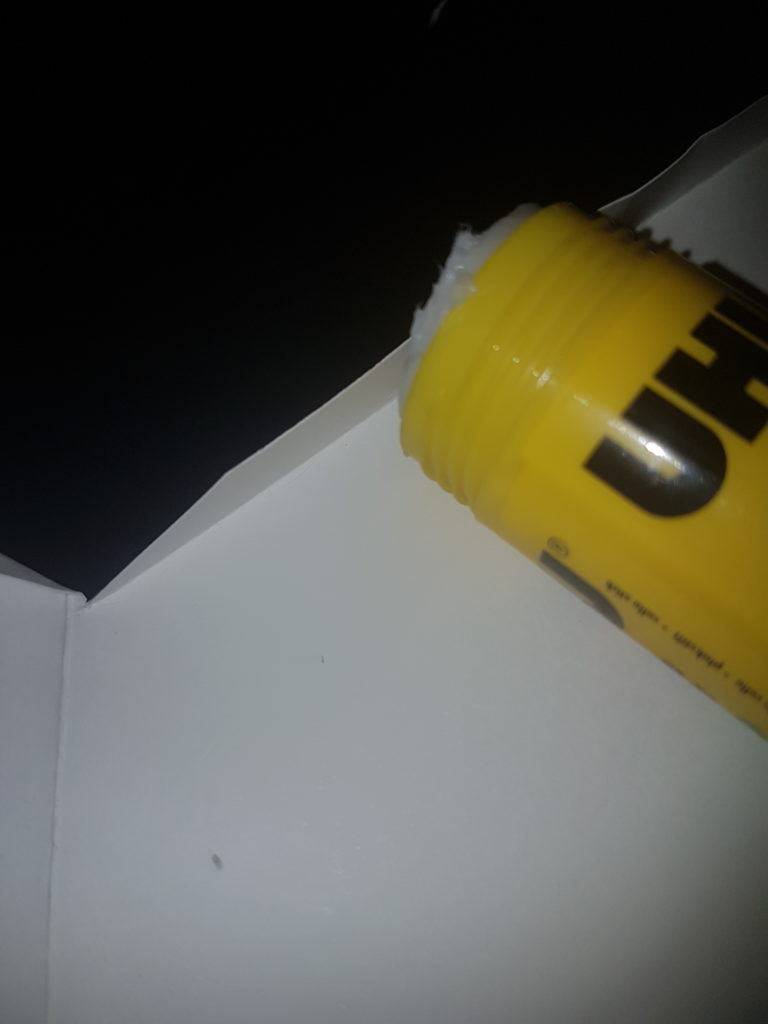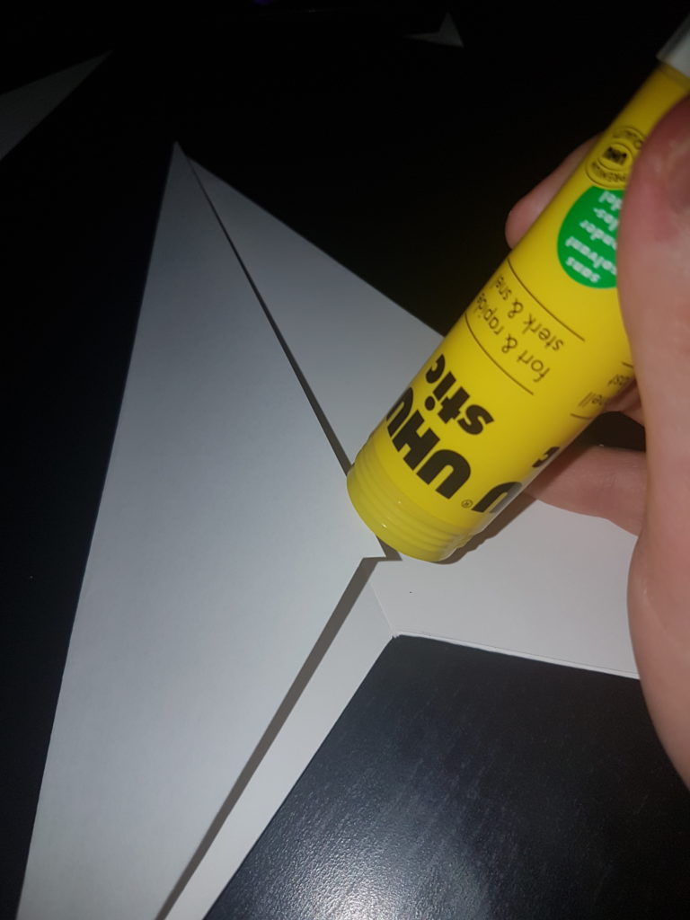 Klebe die Seite, die du in Schritt 2 überlappen lassen hast, auf die andere Seite und warte, bis der Kleber getrocknet ist.