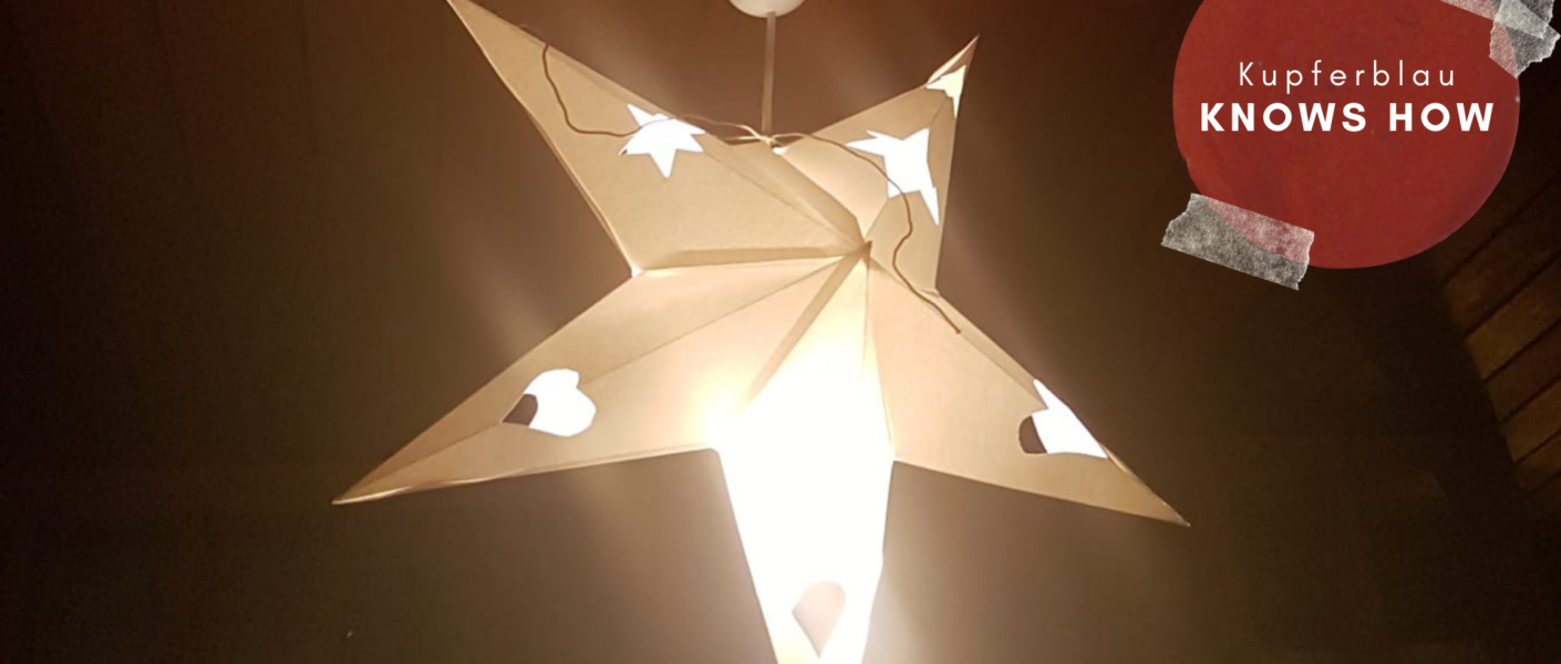 Trick 17‘, ‘Gewusst wie‘, ‘Wieso? Weshalb? Warum?‘ – unzählige Formate klären über die unterschiedlichsten Themen auf. Und dennoch gibt es immer noch diese Momente in unserem Leben, in denen uns ein großes Fragezeichen auf die Stirn geschrieben steht. Doch damit ist jetzt Schluss – Die Kupferblau befasst sich mit den wirklich wichtigen Themen des Lebens! Heute: So bastelst du eine Sternenlampe aus Papier ganz einfach selber.
