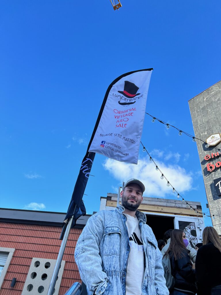 Der Gründer von Lumpenbande Micha Decker vor dem Eingang des Kilo Vintage Sales.