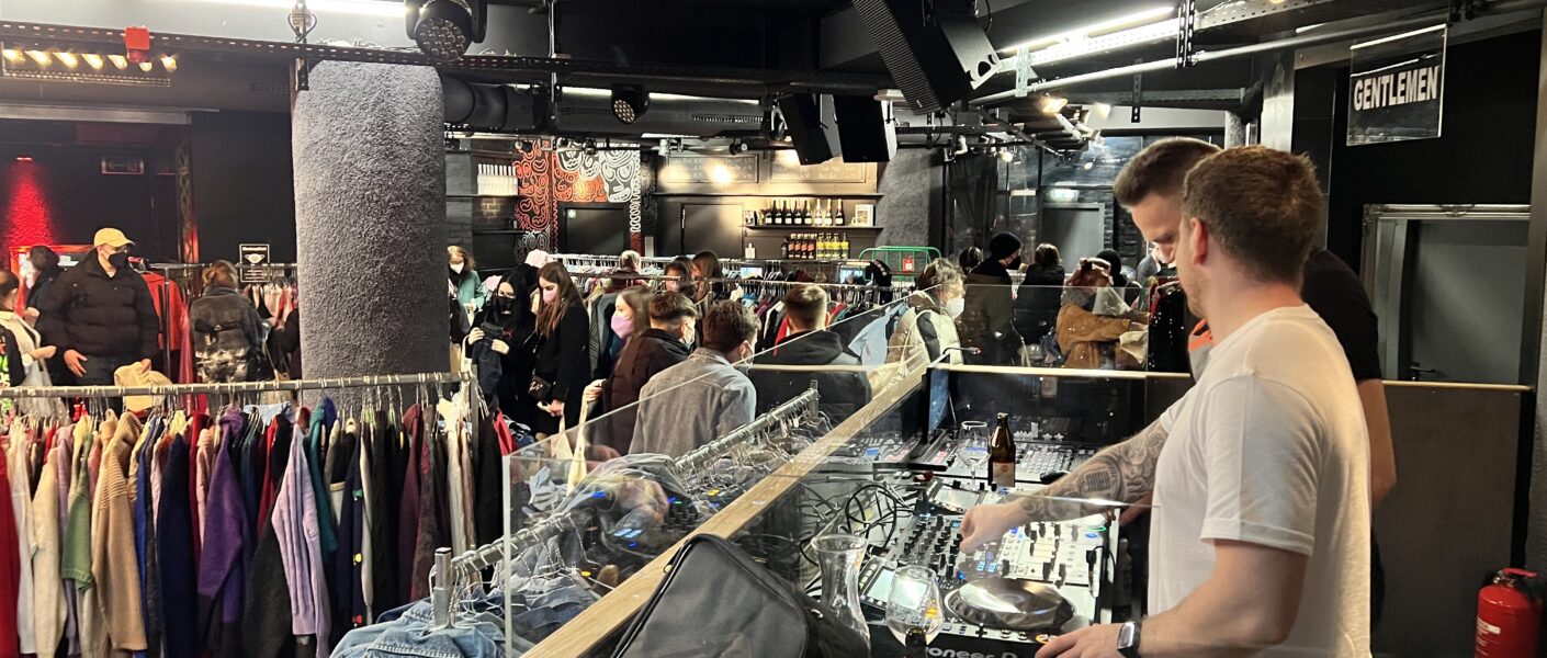 Der Tübinger Vintage Kilo Sale von Lumpenbande ist ein Exemplar dieses Modetrends. Bei einem Vintage Kilo Sale erhält man einen Kilo Kleidung für einen festen Preis, in diesem Fall 35 Euro/KG. Der Verkauf findet dieses Mal in der Friedrichs Bar an der Blauen Brücke statt, vor der die wartenden Kund*innen eine lange Schlange bilden – darunter auch ich.. Endlich werden wir  reingelassen und mit lauter Musik vom DJ begrüßt. Ich beobachte begeisterte Kund*innen, die im Rhythmus der Musik den Kopf nicken und sich die Auswahl anschauen. Spontan finde ich den Gründer von “Lumpenbande” und habe die Möglichkeit ihm ein paar Fragen zu stellen.
