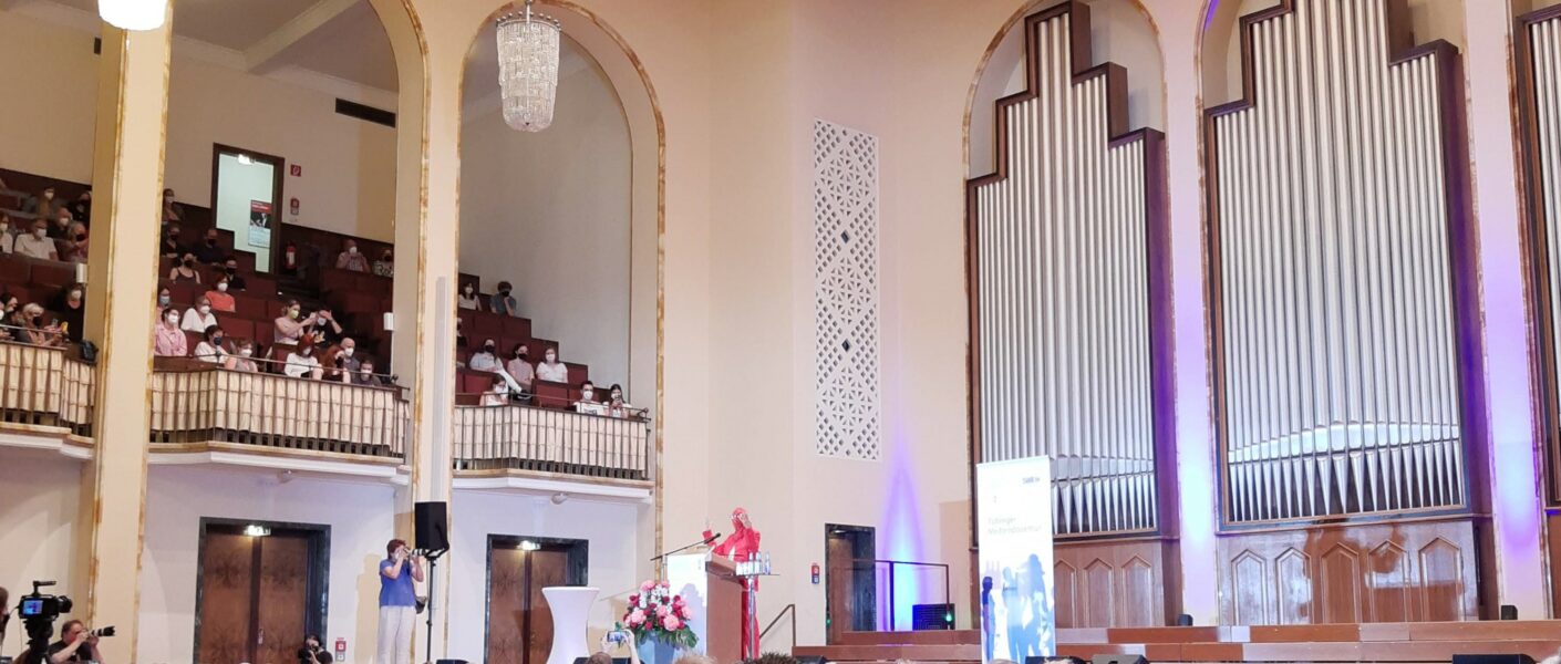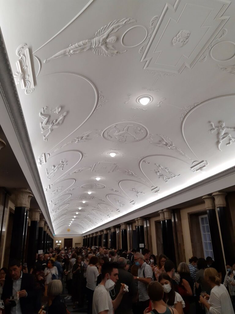 Diese Botschaft kommt offensichtlich gut beim Publikum an. Immer wieder sieht man nickende Köpfe und aufmerksame Augen. Mit ruhiger, nuancierter Stimme spricht Dörrie das Publikum direkt an, lacht herzlich – auch über ihre eigenen Witze und Anekdoten – und bringt mit ihrem sympathischen Gestus eine ausgelassen lebhafte Stimmung in das formale Umfeld des Festsaals. So fühlen sich alle vertretenen Altersgruppen angesprochen – von der Studentin bis zum Senioren. Ihre Festrede wirkt generell vielmehr wie ein Fest-Gespräch, was bei dem komplett geskripteten Text durchaus eine beeindruckende Leistung ist.