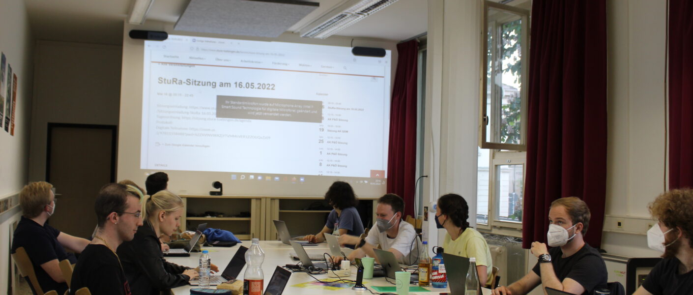 Der StuRa tagte in einem Hybrid-Format: viele Mitglieder waren in Präsenz anwesend, wer wollte, konnte sich online zuschalten. ©Hannah Burckhardt
