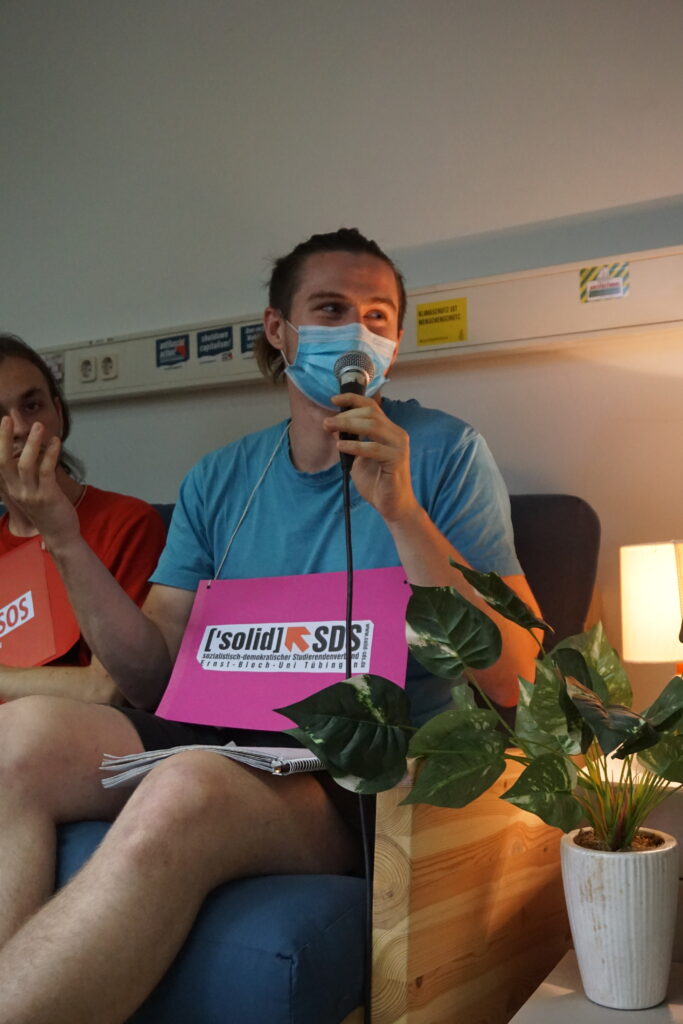 Zwischen den Vertreter*innen herrschte Uneinigkeit darüber, wie Extremismus zu definieren sei. LHG und RCDS argumentierten, dass die Gruppierung in einem Verfassungsschutzbericht des Landes Baden-Württemberg auftauche. Andere Hochschulgruppen und Listen hielten dagegen und bezeichneten Antifaschismus als wichtigen Teil einer demokratischen Gesellschaft. Schließlich nahm Moritz – der Vertreter der FSVV – dieser Debatte ein wenig den Wind aus den Segeln. Er argumentierte, dass ähnliche Beschlüsse zunächst immer in Beratung mit dem Rechtsaufsicht diskutiert würden und jederzeit von anderen Gremien gestoppt werden könnten. Zudem betonte er, dass mit den Geldern explizit Projekte gefördert würden und keine Gruppierungen an sich. Damit wurde die Debatte über die erste Frage geschlossen.