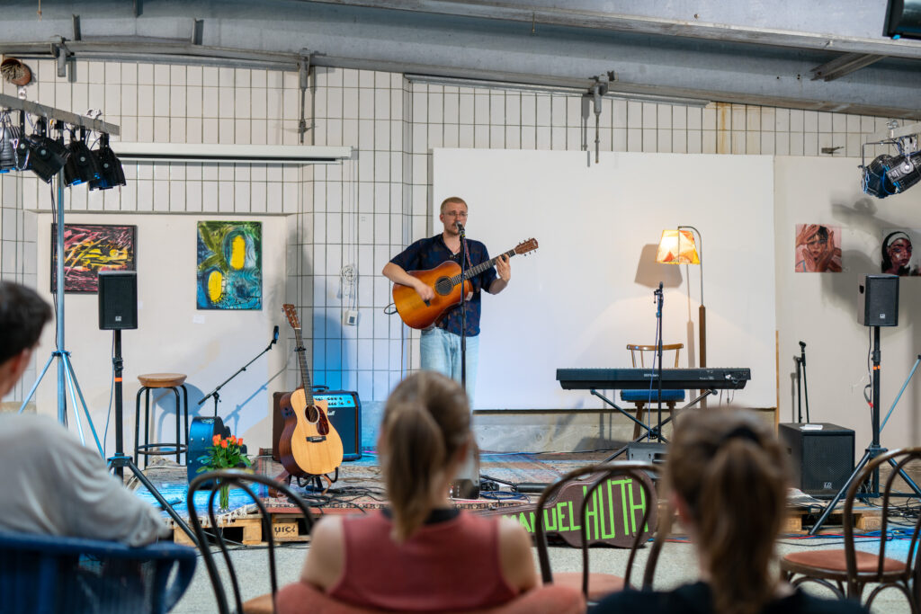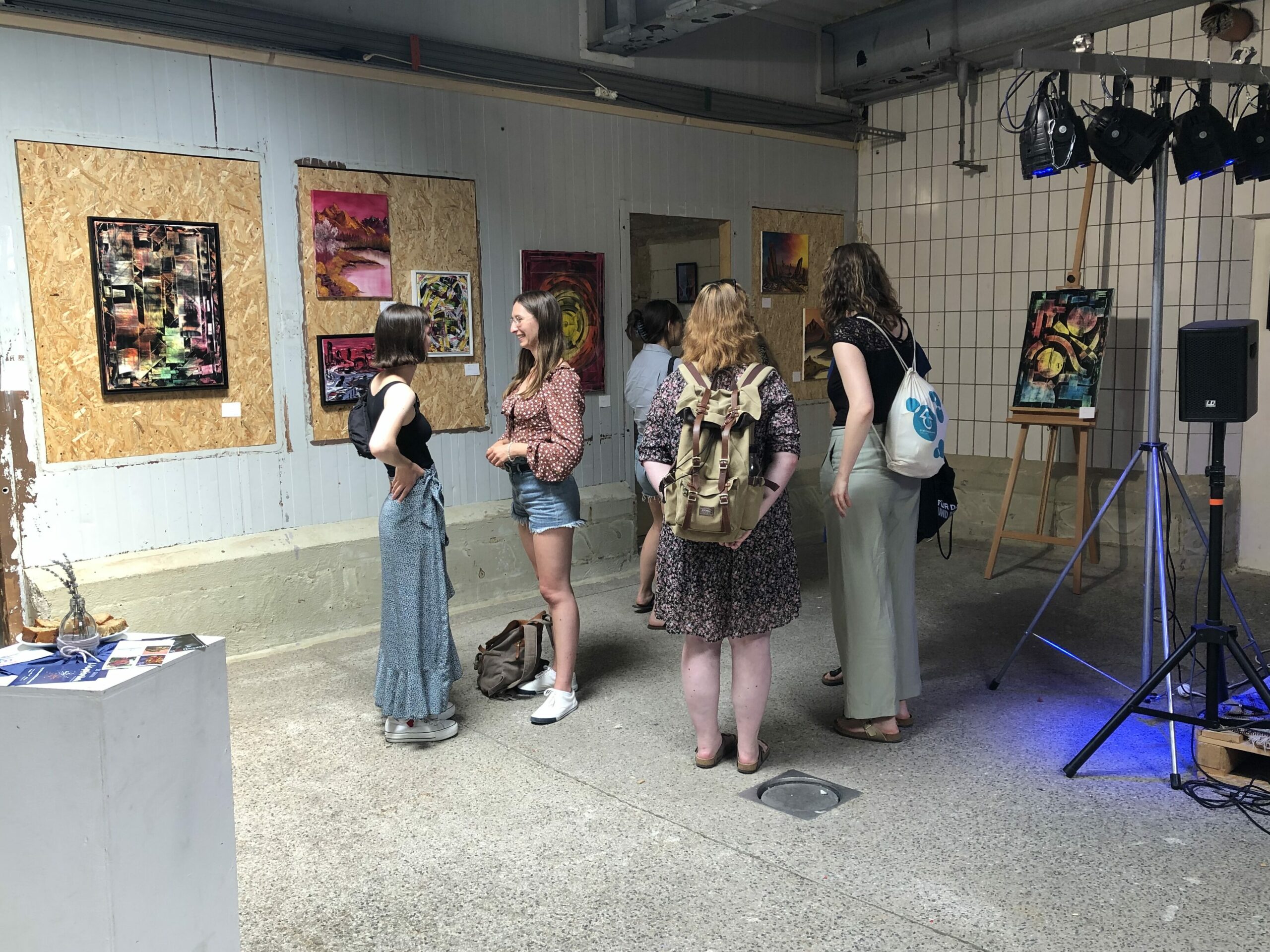 Auf der Kunstschau war es auch möglich, mit den Künstler*innen und Musiker*innen ins Gespräch zu kommen. Man konnte auf diese Weise einen Einblick in die künstlerische Ideenfindung gewinnen, sich nach den verwendete Maltechniken erkundigen oder bei offenen Fragen zu den Werken auch direkt nachhaken.