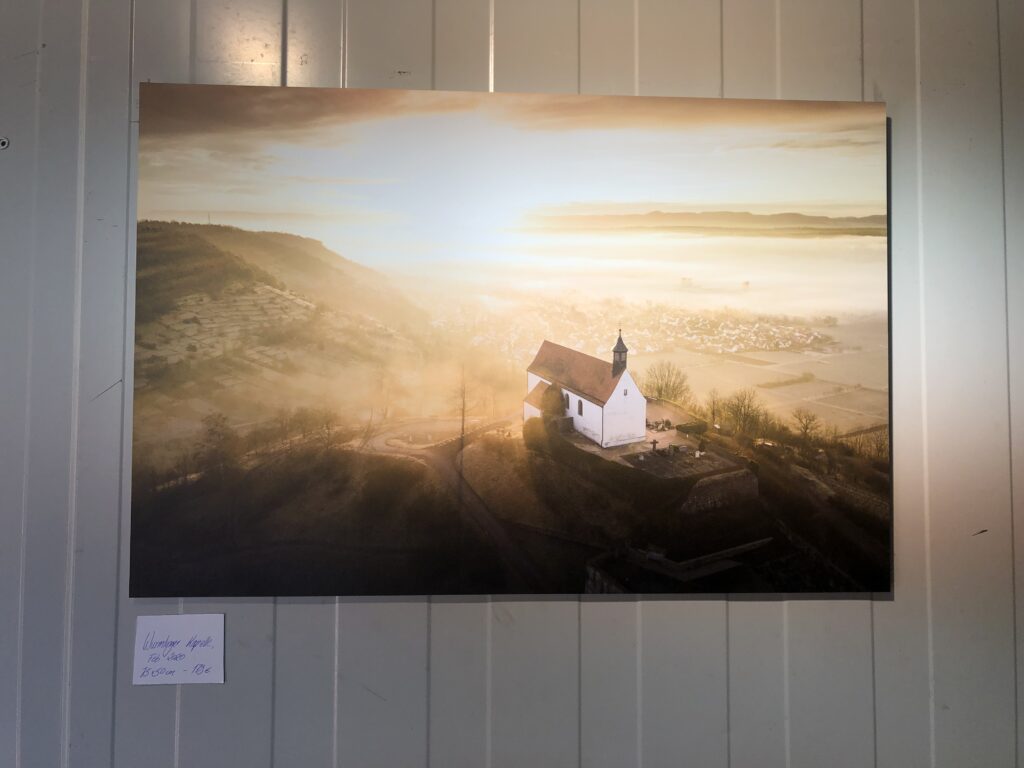 Auf der Kunstschau waren Werke von Hannah Krämer, Cedric Kirchhöfer, Lars Krause und Marko Knab zu sehen. Das Spannende war, das diese vier Künstler*innen völlig unterschiedliche Kunststile haben. Marko Knab hat Fotografien mit unterschiedlichen Motiven ausgestellt: vom wolkenverhangenen Schloss Hohenzollern bis zu der Aufnahme einer farbenfrohen Mandarinente. Seine Bilder transportieren Weite und die Lust am romantischen Augenblick.