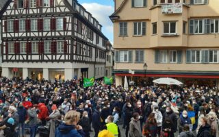 Der Wecker klingelt uns nach etwa drei Stunden aus dem Schlaf. Die meisten Vorbereitungen wurden am Abend davor erledigt. Schicht für Schicht ziehen wir warme Klamotten an, darüber Regenhose, Regenjacke, Mütze, Buff. Es soll kalt werden in Lützerath. Außer dem Personalausweis und etwas Kleingeld ist der Geldbeutel leer, alles Unnötige wird Zuhause gelassen.  Die Verpflegung für den Tag haben wir in kleine Rucksäcke gepackt, die Trinkflaschen sind aus Plastik, nicht aus Glas oder Metall. Alle Teilnehmenden der Demo wurden im Vorfeld angehalten, nichts mitzunehmen, was als Waffe gezählt werden könnte. Ziemlich verschlafen und etwas nervös machen wir uns auf den Weg zum Bahnhof. Von dort soll uns der Bus nach Lützerath und wieder zurück bringen. Fridays For Future Stuttgart hat ganze drei Busse organisiert bekommen, alle voll besetzt. Dementsprechend viele Menschen warten am Bussteig, als wir ankommen.