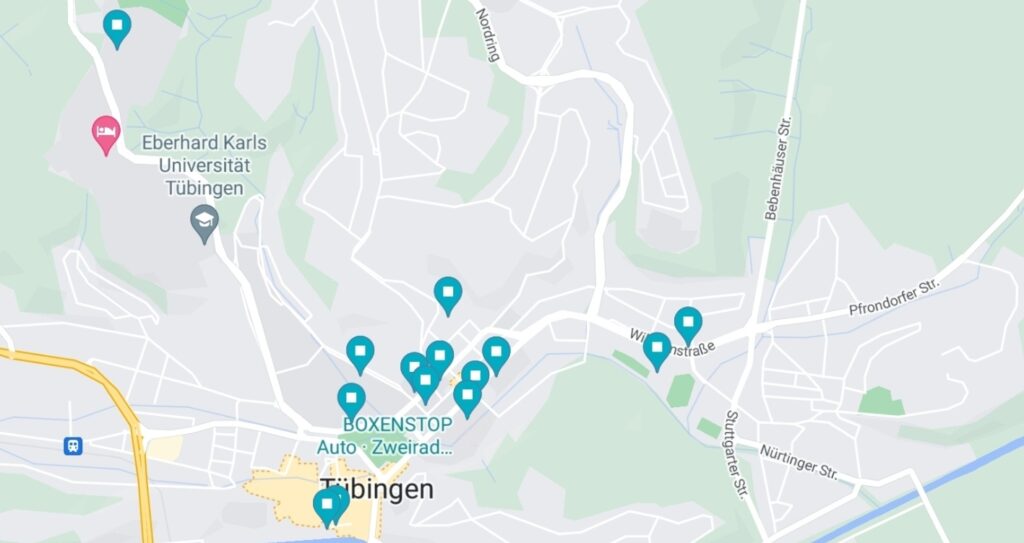Screenshot von einer Aswahl an Uni-Bibs in Tübingen. Foto: Yuk Blomeyer