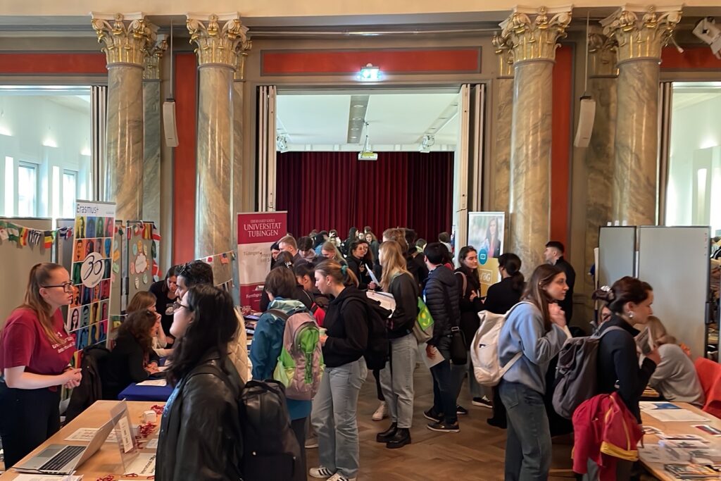 Die Uni Tübingen bietet Austausche in zahlreiche Länder der Welt auf allen Kontinenten an. Um über diese Möglichkeiten Aufschluss zu geben, hielt das International Office am Mittwoch den „Internationalen Tag“ ab, eine Messe, auf der alle Interessierten eingeladen waren, Informationen zu sammeln. 33 Länder, bunt gemischt von Taiwan über Ungarn, Algerien und Chile bis Neuseeland, waren mit Ständen auf der Veranstaltung vertreten, die im Gebäude des Kino „Museum“ für Stimmung sorgte. An jedem Stand erzählten Studierende von ihren Erfahrungen im Ausland: Sowohl diejenigen, die von dort kommen und gerade für einen Austausch in Tübingen sind, als auch die, die in Tübingen studieren und bereits im Ausland waren.