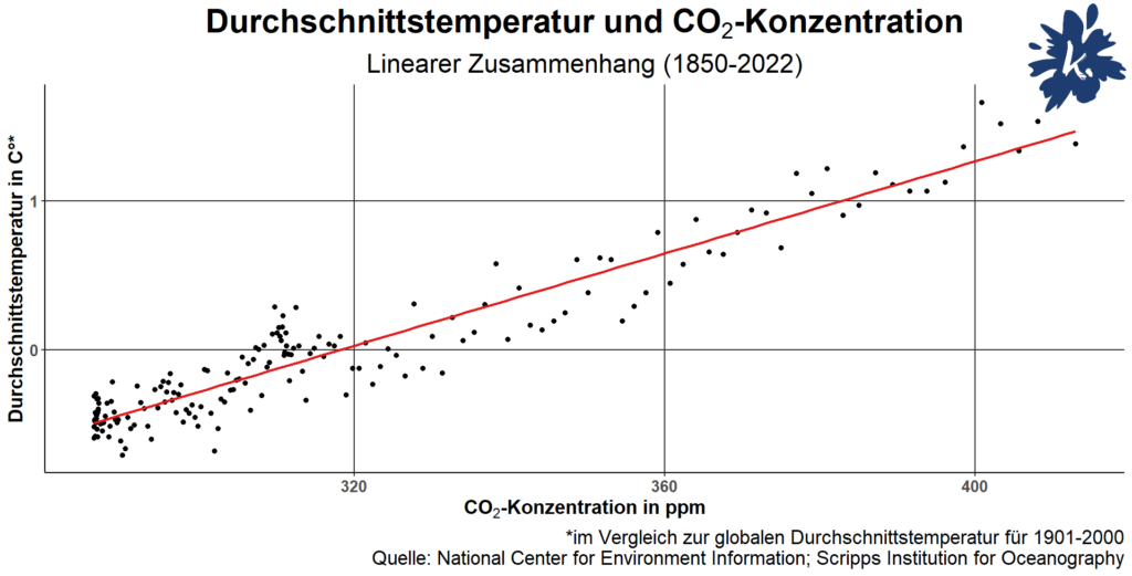 Manche Klimawandelskeptiker*innen zweifeln, trotz eindeutigem Forschungsstand, bis heute an, dass es einen Zusammenhang zwischen der Konzentration von CO₂ in der Atmosphäre und höheren Temperaturen gibt.