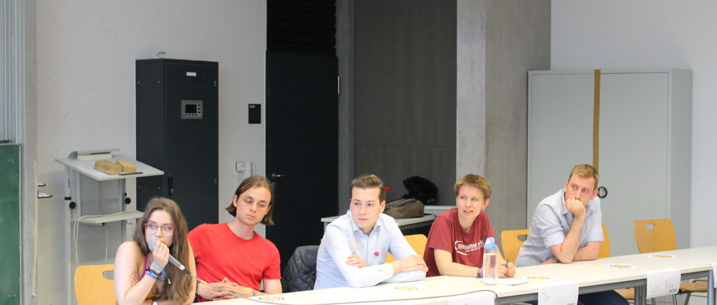 Die Wahl zum Studierendenrat (StuRa) findet am 27. und 28. Juni 2023 statt. Die Kupferblau hat gemeinsam mit dem StuRa am 15. Juni erneut die Elefantenrunde organisiert. Die Veranstaltung wurde auch live auf YouTube übertragen. Für alle, die es nicht zur Elefantenrunde geschafft haben, gibt es die Möglichkeit, die Aufnahme auf YouTube nachzuschauen. Vertreten waren Alicia von der Fachschaften-Vollversammlung (FSVV), Jannis von den Jusos, Felix von der Liberalen Hochschulgruppe (LHG), Jo von der Grünen Hochschulguppe (GHG) und Leon vom Ring Christlich-Demokratischer Studenten (RCDS). Von der Linksjugend solid.SDS (Sozialistisch-Demokratischer Studierendenverband) und der Unabhängigen Liste Fachschaft Jura (ULF) waren aus Krankheitsgründen leider keine vertretenden Personen dabei. Die Moderation übernahmen Janne und Leo von der Kupferblau.