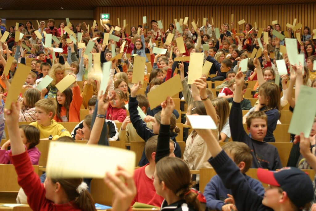 „Wieso, weshalb, warum? Wer nicht fragt bleibt dumm.“ – so heißt es im Titellied der bei Kindern allseits beliebten Sesamstraße. Das scheint sich die Tübinger Kinder-Uni ebenfalls zum Programm gemacht zu haben. Das Konzept: Wissenschaftliche Themen kindgerecht aufbereitet in einer 45-minütigen Vorlesung. Die Idee dazu hatte das „Schwäbische Tagblatt“, welches nun seit über 20 Jahren in Zusammenarbeit mit der Universität jedes Semester eine Vorlesungsreihe für Kinder von sieben bis zwölf Jahren veranstaltet, die alle möglichen Fragen beantwortet. Dieses Semester mit dabei: Warum schwindelt künstliche Intelligenz manchmal?, Warum dürfen Journalist*innen nicht lügen? und Warum haben manche Kinder gute Noten und andere nicht? Diese Woche behandelte die Biologin Prof. Dr. Lena Veit die Frage: Warum singen Vögel? Da das Warum schnell beantwortet ist, legte sie den Fokus zu Beginn auf das Wie.