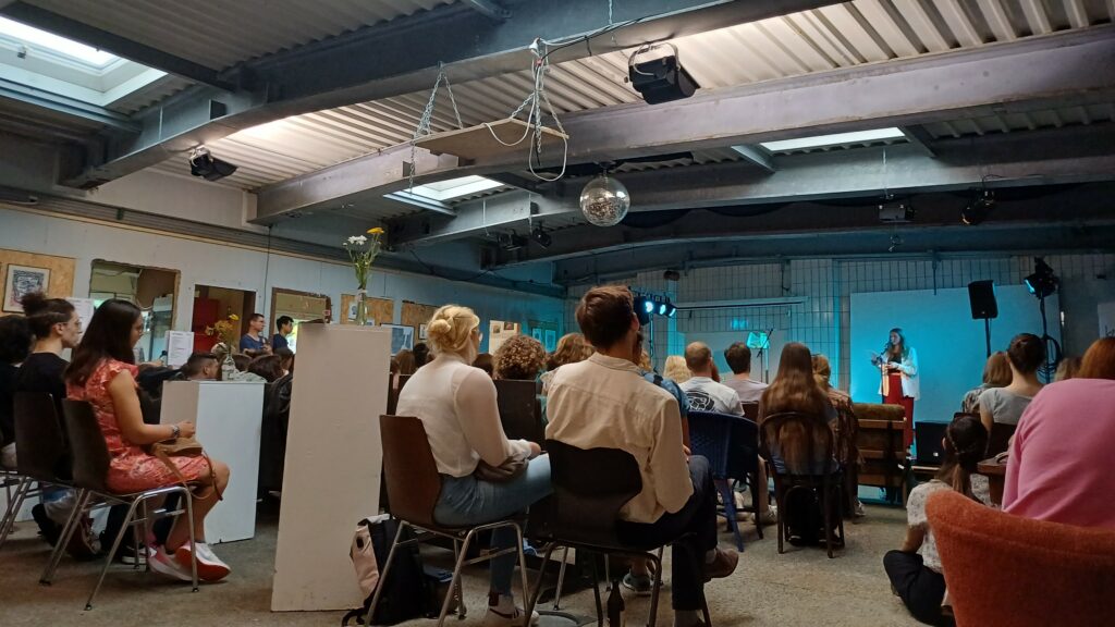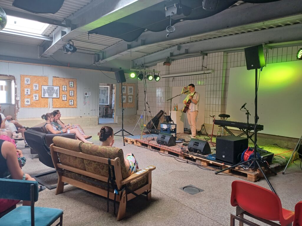 Im Mittelpunkt der Wochenendveranstaltung stand jedoch natürlich die Kunst. Sieben junge Künstler*innen stellten in den Räumlichkeiten der Shedhalle aus. Die Bandbreite reichte von Gemälden und Radierungen über Fotos bis hin zu geschriebenen gesprochenen Gedichten -anhörbar über bereitgestellte Kopfhörer-Stationen. Dieses Jahr stellten aus:  Sara Karanusic (Illustration), Thomas Dinges (Fotografie), Patrick Muczczek (Linolschnitt), Subarna Sriranjan (Acrylgemälde), Felix Ernst Peter Schalk (Radierungen), Magnus Pötschke (Poesie) und Konstantin Fahrner (Lautmalerei). Durch die Ausstellung  wurden Samstag und Sonntag Führungen angeboten, die einen tieferen Einblick in die Arbeiten der Künstler*innen und die Gedanken hinter den Werken für Besucher*innen möglich machten.