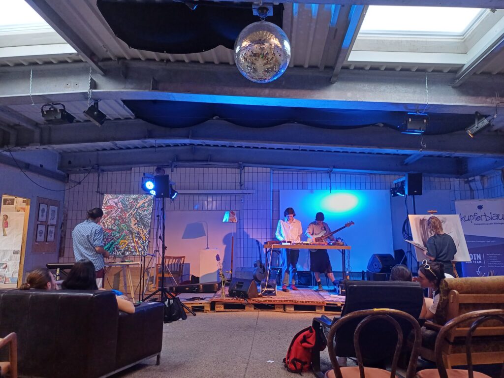 Auch der Sonntag war gespickt mit kleinen Events. Neben einer Pflanzentauschaktion und einem gut besuchten Improtheater wartete die Veranstaltung mit einer Jamsession mit Gesang und Musik von KUBAS LOUNGE auf. Am späten Nachmittag schloss die Tübinger Newcomer Band BELLADONNA die Kunstschau mit selbstgemachtem Alternativ-Rock ab.