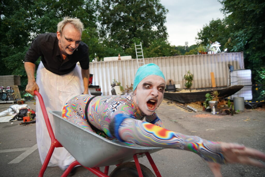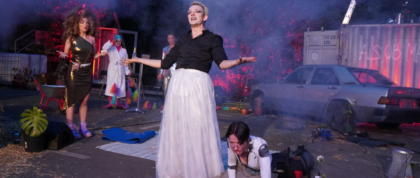 Chaos und Destruktion – das sind Leitmotive des im ITZ-Sommertheater aufgeführten Stücks Irrlichter. Ein Sommernachtstrauma. Die Elfen sind aus den Wäldern verschwunden – Oberon und Titania, König und Königin des Elfenvolkes aus Shakespeares Originalwerk, sind längst tot. Nur Puck, ehemals Diener und Hofnarr Oberons, ist zurückgeblieben und manipuliert noch immer die Schicksale der Menschen, die sich im Wald wiederfinden. Schrill und clever inszenieren die Schauspieler*innen des ITZ eine dystopische Version von A Midsummer Night’s Dream, in der die Figuren dem entsprechen, was sich unsere Gesellschaft groß gezogen hat: es finden sich ein desillusionierter Elf, ein ausrangierter Handwerker, ein oberflächliches Pärchen und sogar ein gefährliches Bakterium.