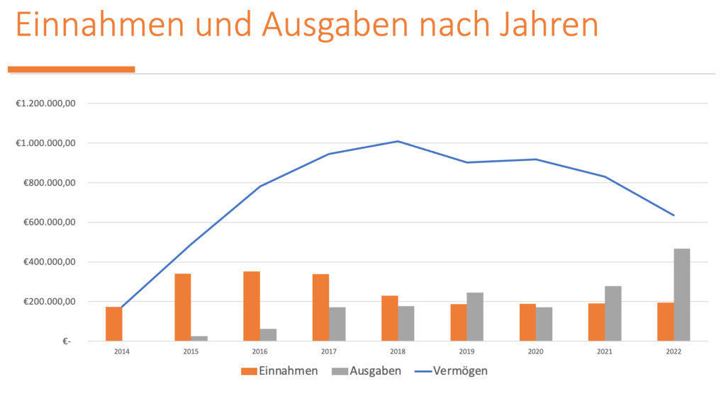 Ende 2022 befanden sich noch 636.283 Euro auf dem Konto. Nachdem das Geld für die Cafeterien davon abgezogen sein wird, wird nicht mehr viel übrig bleiben beziehungsweise ein bestimmter Betrag, der nötig ist, um „liquide“ zu bleiben. Ein gewisser Betrag muss immer auf dem Konto sein, um überhaupt Überweisungen tätigen zu können.