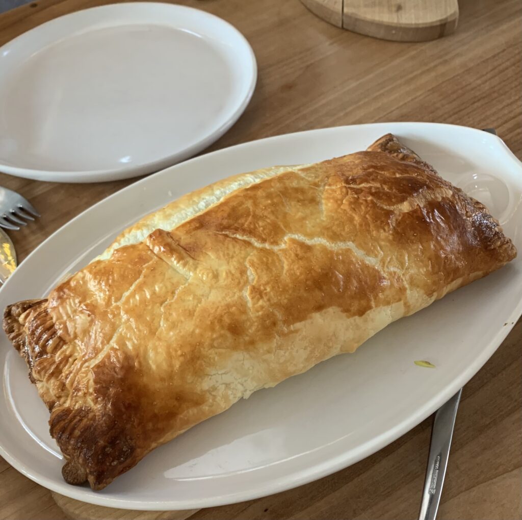 7. Am besten schmeckt das No-Beef-Wellington mit einer dunklen Soße und Kartoffeln oder Nudeln dazu.
