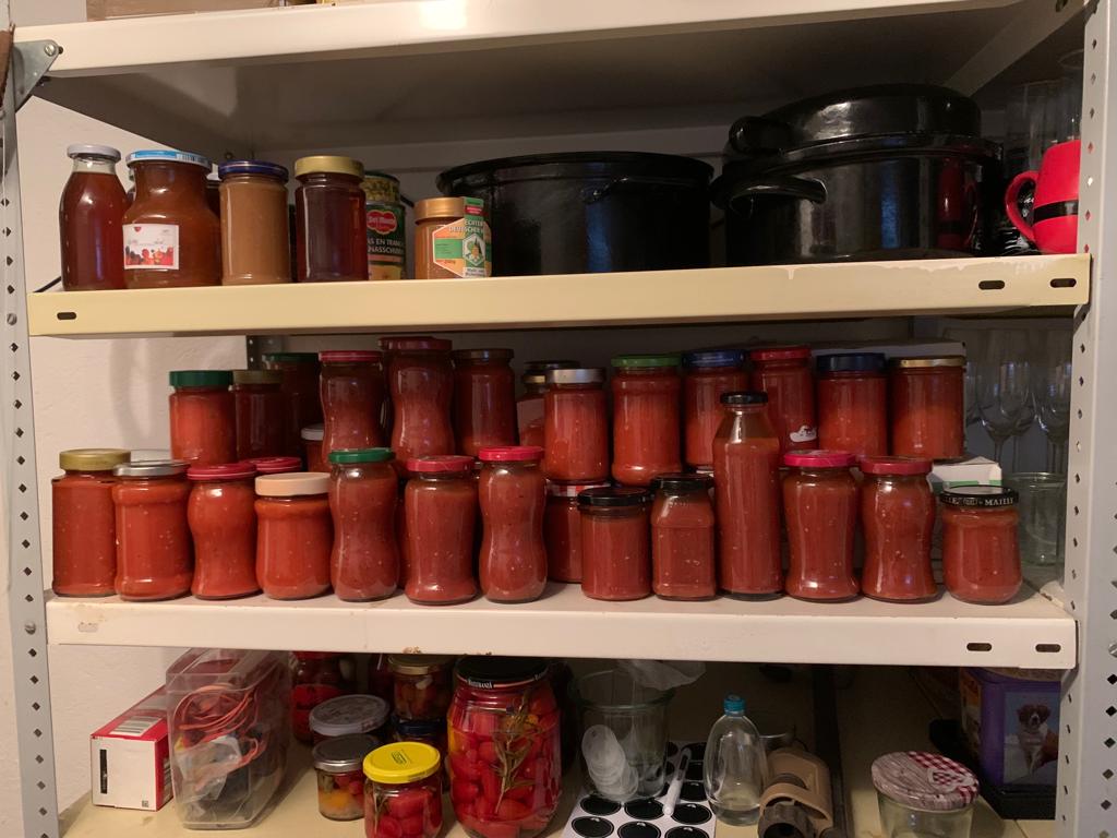 Wenige Tage später: Ich habe kiloweise Tomaten geerntet. Weitere 13 Gläser mit Tomatensauce produziert.