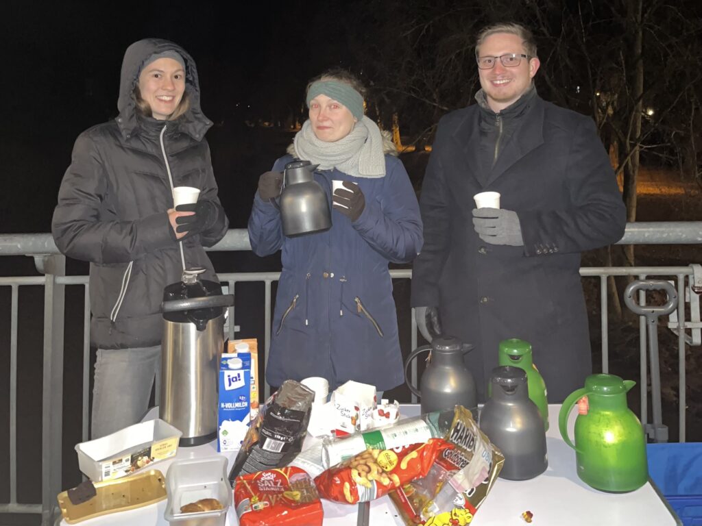 Die Neckarbrücke bot am Donnerstagabend ein seltsames Bild: Auf beiden Seiten des Gehwegs waren Tische aufgebaut, dahinter stehen dick in Winterbekleidung eingepackte Gestalten. Mitglieder christlicher Hochschulgruppen versorgen Passant*innen hier mit Late-Night Snacks. Die Kupferblau fragte nach, was hinter der Aktion steckt.