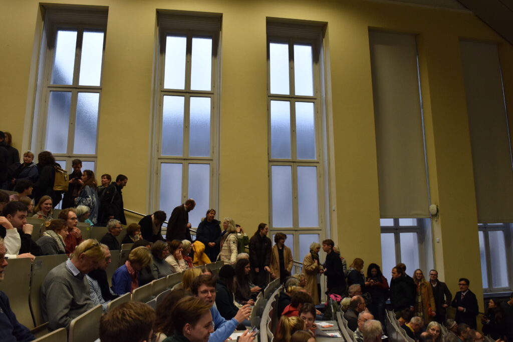 Das Audimax war brechend voll, sodass viele Interessierte mit Stehplätzen vorliebnehmen mussten. Bild: Max Maucher