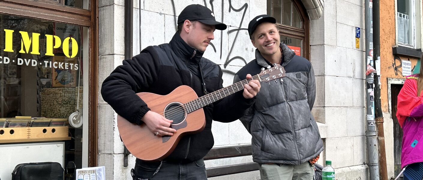 Zur Promotion ihres neuen Albums EKSTASE sind zwei Mitglieder der Indie-Rock Band Kaffkiez momentan in einigen deutschen Städten für spontane Akustik Shows unterwegs. Auch Tübingen durfte die Jungs am Dienstag empfangen. Zwischen einer kleinen Signierstunde und einer Show im Café Haag hatten sie außerdem noch Zeit für ein schnelles Interview mit der Kupferblau.