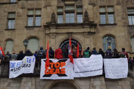 Stop GEAS! Ein Tübinger Bündnis aus Gruppen und Einzelpersonen organisierte für den 28.10.2023 eine Kundgebung mit anschließender Demonstration, bei der die geplante Verabschiedung der GEAS-Reform scharf kritisiert wurde. Beteiligt haben sich auch Aktivist*innen der Seenotrettung.