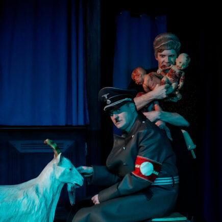 Zwischen Gegenwart und Vergangenheit bewegt sich von Praunheims Stück “Hitlers Ziege und die Hämorrhoiden des Königs”. AfDler, die Hitler wieder auferstehen lassen und dabei singen “AfD, AfD, Arschlöcher für Deutschland” sind nur die Spitze des Eisbergs und lassen nur erahnen, welche abgedrehten Machenschaften noch in den Räumen des LTTs folgen …