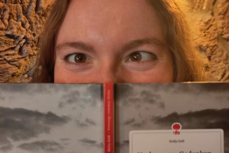 Holly Geiß (25 Jahre) ist Studentin an der Universität Tübingen (Internationale Literatur & Slavistik). Dieses Jahr hat sie ein Buch mit dem Titel ‚Vorlesungs-Gedanken-Welten‘ veröffentlicht. Es besteht aus 17 Kurzgeschichten über alle möglichen Alltagssituationen, die sich – mal mehr mal weniger – ins Absurde entwickeln. Bunt zusammengewürfelt und allesamt entstanden …