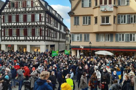Strack-Zimmermann war in Tübingen zu Gast. Sie bezeichnete den russischen Angriffskrieg als „Perversion der Geschichte“.