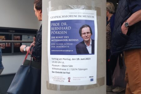 Bernhard Pörksen gehört zu den Professoren, dessen name man auch über die Grenzen der Stadt Tübingen hinaus kennt. Am Montagabend referierte er in den Sälen der Museumsgesellschaft vor knapp 300 Zuhörenden über die Kunst der Kommunikation und darüber, wie wir uns einander besser zuhören können.
